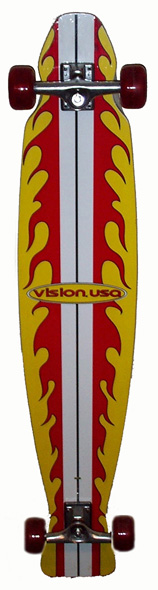 The first manufactured boards came in 1965. They were inch-thick wooden boards, with narrow cast-iron trucks and hard rubber wheels. Soon, races down the sidewalk began to vary and competitions between skateboarders were born: free style, slalom, downhill, high jump and long jump. In the mid-70's skaters started using drainage channels and routes up the slopes around buildings for skateboarding. This opened up the new world of tricks. Skateboarders soon discovered bank skating and they soon were able to manoeuvering their bodies more skillfully. Vert skating then began by using back yard swimming pools. All you needed was a little but of extra speed and you could ride your board up the wall, or so they thought. It was a bit more complicated than that. 1) Pool owners didn't like their swimming pools being used for skateboarding 2) Pools weren't rounded enough. Transitions were to vertical to fast and it would launch them into the air, and even if they could stay on, they would not have enough speed to get up the other side. Skateboarding quickly developed in the US and soon skateparks were built. Pools were built with more rounded sides and then lay-outs for bank and freestylers were built. Until the early eighties, parks were the main hang-out for boarders. Competitions and tournaments were organized for them and soon pool and vert skating became the most popular specialist form of boarding.