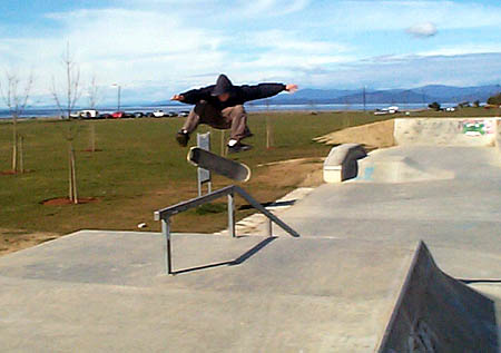 Skateboarding, a young sport of which no one truly knows the origin. Many stories revolve around the invention of skateboarding. Some believe that skating began on the surfing beaches of California, USA in 50's by surfers who put rollerskates on surfboard. At first boarding was known as a type of sidewalk surfing which was done when the waves were to small to go out surfing. The origins of skateboarding are reflected in the design of the earlier skateboards which looked like surfboards. The boards were narrow (4in, 10cm) and much shorter than boards now and the 'sidewalk surfers' from the 50's would ride in bare feet and in more sideways stance than we do today. All they would have been able to do is ride up and down sidewalk and turn by leaning in the direction they wanted to go.